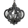The Design With an intricate design, charcoal gray finish, and glass bulb covers, the 6-Light Chandelier radiates warm light in timeless, sophisticated style. Classic curves and neutral color combine to make this piece a versatile, eye-catching light fixture. Let this piece bring a vintage appeal to an entryway, master bathroom or dining room.
