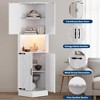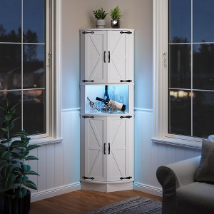 65" Farmhouse Corner Cabinet with LED Light, Freestanding Display Storage Cabinet with Barn Door, 5 Tier Shelves and USB Ports & Outlets