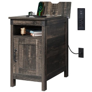 GALAXHERO Farmhouse End Table for Living Room Nightstand with Charging Station