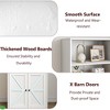 - Flexible Storage Configuration-Four open shelves combine with an enclosed cabinet behind sliding barn doors for versatile display and concealed storage options.