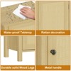 - Crafted from solid wood with a neutral finish that highlights the natural grain, this nightstand combines farmhouse warmth with modern minimalism, creating a versatile piece that complements various interior styles from rustic to contemporary.