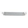 - •Galvanized metal trays feature a small rectangular shape with upright handles and a solid iron base