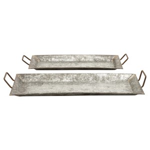 - •These crafty gray galvanized trays feature an elongated rectangular shape with upright handles
