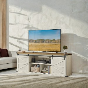 Farmhouse TV Stand for 75-Inch TVs with Sliding Barn Doors, 70 Inch Entertainment Center with Charging Station and Adjustable Shelves, Rustic White - 1 of 4