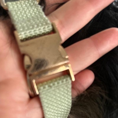 Let your dog prance around in style on your next walk with this Fashion Solid Dog Collar from Boots & Barkley™. It boasts a pretty light green collar made from a textured fabric for an extra chic look that will have your pet looking super stylish. It's accented with a gold buckle and D-ring that allow you to dress your pup hassle-free for their daily walks. Simply clip it closed, adjust the straps to the right fit, attach the leash, and your furry friend is ready to go!