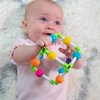 Very innovative toy. Great for both hand usage, easy to play with, chew on. My baby is greatly enjoying passing it hand to hand, putting on her arm, and teething on