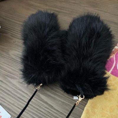 [This review was collected as part of a promotion.] These are the Universal Thread alpine faux fur mittens in black. They are quite a statement. They are very fluffy and seem to shed easily. I love that they have a connecting strap. Then when you take them off, they will stay together and can be carried easily. I have larger hands and the one size fits me just fine.