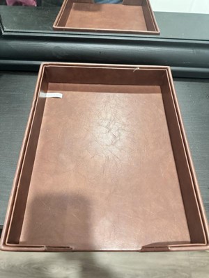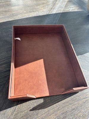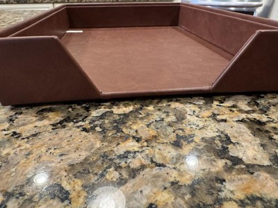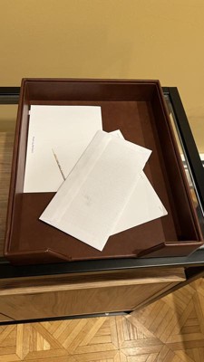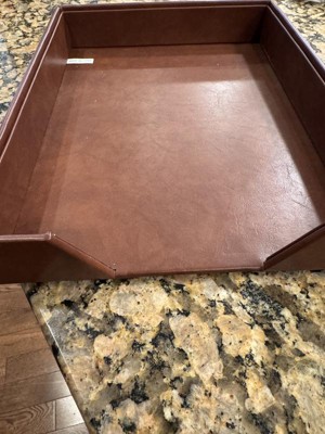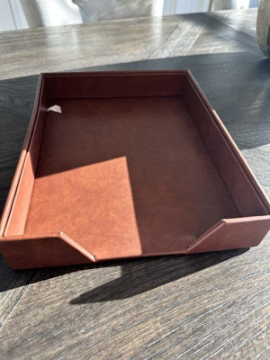 Just the right size letter tray for our home office desk. Great faux leather and easy to care for. Fits our style perfectly and will get another for our drawer organization. Highly recommended!!!!!