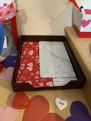 Cute faux leather tray for papers and letter. It’s large enough to fit standard size paper. It makes a cute addition to a desk top or countertop to collect documents and mail. The color is not my favorite, but it works.