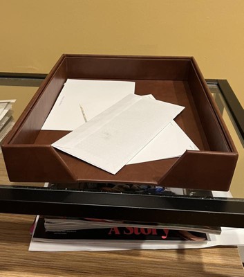 Perfect. Elegant and functional. This Faux Leather Letter Tray is great for keeping my mail together and organized in one spot. Also I carry my tray around while in need to work in different places. The tray is sophisticated and the design is simple and practical. This is a classy way to hold some paper clutter.
