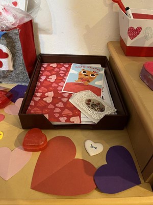 Keep your study area or workspace nicely organized with the Faux Leather Letter Tray from Threshold™. This letter tray is designed with a cutout at the front for a simple yet elegant look while providing ample space for letters, school work, and office supplies. Made of faux leather, this open-top tray makes a practical addition to your space.