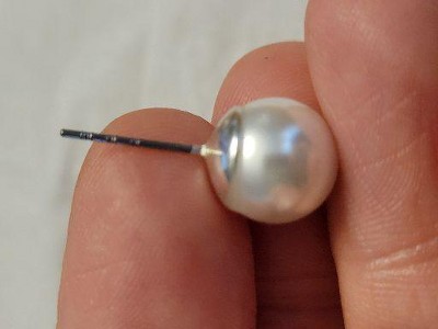 I liked the variety of sizes of these pearl studs. They look pretty realistic in terms of color and size. I wasn't a fan of the posts for two reasons. First, they have a metal cup (?) affixed to the stem. This creates a lifted appearance rather than a flush one. Some might prefer this, but I don't. The second issue was the actual length of the post. It was, in my opinion, very long. I put my head in my hand with my elbow on a table and the post nearly stabbed me it was so long. I could snip them a bit with some tin snips.