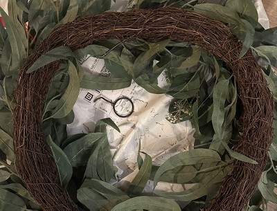 - Faux mixed eucalyptus wreath with a simple, clean design