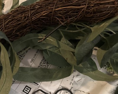 Q: What is 'faux eucalyptus"? Does that mean it is some other botanical leaf, not a eucalyptus? Or is it some other material other than plant material?