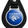 - QUALITY MATERIAL: Our durable round keychain is crafted from leather with a glossy resin-topped emblem featured design shown on one side. Approximately 1.5" (3.8cm) x 2.5" (6.4cm) in overall size, emblem is 1" (2.5cm)..