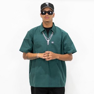 FB County SOLID Short Sleeve Zip Shirt Green Medium