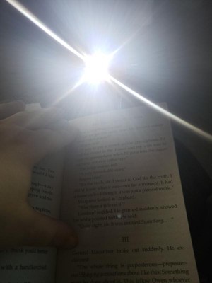 [This review was collected as part of a promotion.] This little light is amazing. It's really bright and makes reading in bed a lot easier without having to leave on the bedside lamp!!! I think the only thing that would make it even better is if they had different intensities since it can be super bright