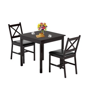 - ღ [Upgraded Cushion with Upholstery] There is one dining table and two upholstered dining chairs included with this set. Our kitchen table's modern faux leather upholstered dining chair is a cozy accent to any eating area. This wood dining set will look fantastic in your kitchen or dining area because it combines a classic comfort with a modern design.