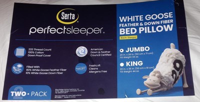 Serta Standard Feather & Down Fiber Back Sleeper Bed Pillow: 233 Thread Count, Cotton Cover, Medium Fill Density
