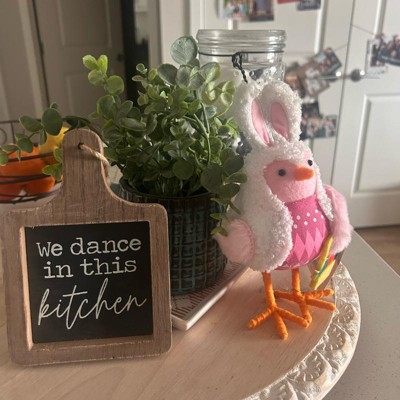 This is a great fun decoration to add to your Easter decor. It is the cutest little chick with fun and colorful pastel colors carrying an Easter basket with multiple colored eggs. Both kids and adults alike will enjoy viewing this item in the home. I like the fact that the ears are adjustable. I would recommend for quality as well as sold at a good price point.