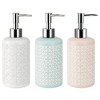 - Ceramic Lotion Pump in white features a textural embossed circular diamond motif in a distressed finish