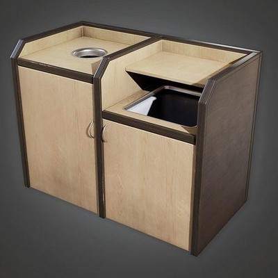 I really want to like the look of this. It has a great non-symmetrical aesthetic to it. Color is great. But I can’t stop seeing one of those trash receptacle with the shelf for your plastic tray. Take another look and try NOT to see it, go ahead I’ll wait. Right??
