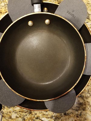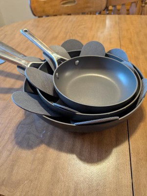 I am really excited for these pan protectors. This will help ensure that my non-stick pans continue to remain this way and do not have any scratches on them. The gray felt is a nice touch to match our pots and pans. They were very easy to use as you can see in the picture.