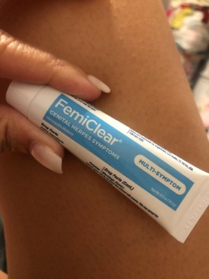 FemiClear for Genital Herpes Symptoms – Multi-Symptom Relief is a topical ointment that provides fast-acting, soothing relief from genital herpes outbreak symptoms – including itching, tingling, pain, and burning. Proven to kill 99.9% of the herpes simplex I & II viruses1, FemiClear?? helps promote healing of painful, bothersome outbreak sores. It is also made with all-natural, organic ingredients and no artificial chemicals, making it a great solution for those looking to take care of their bodies and confidently manage their outbreak symptoms. In a self-reported study, over 90% of people who used FemiClear?? during an active outbreak reported less severe outbreak symptoms (less itching, burning, pain). Early use ensures best results.