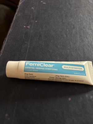 Consult your doctor before using this product if this is the first time you have genital sores or blisters. When using this product, continue your prescribed medications and follow your doctor's advice. Femiclear is not a cure for herpes and will not prevent future outbreaks. This product will not stop the spread of the herpes virus or other viruses. Viral infections are contagious. FemiClear does not prevent sexually transmitted infections. Practice safer sex by using a latex or polyurthane condom to reduct the risk of getting STIs. FemiClear may damage condoms an diaphragms and cause them to fail. Do not use if you are allergic to any ingredient in this product. When using this product, consult a healthcare professional. Only apply to the affected areas. Do not use in or near the eyes. Do not share this product with anyone. This may spread the infection/virus. Stop use and ask a doctor if your symptoms worsen. Ask a healthcare professional before use if you are pregnant or breast-feeding. Keep out of reach of children. If swallowed, get medical help or contact a Poison Control Center right away.