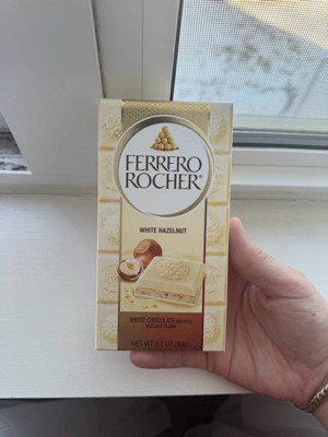- FERRERO ROCHER BAR: Enjoy a 3.1 oz Ferrero Rocher Premium chocolate bar, crafted with smooth white chocolate, crunchy hazelnut pieces and filling, all wrapped in elegant gold foil