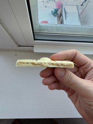This is very cream, crunch, and just delicious. You can taste the nuts and the white chocolate flavor. It is really hard to find white chocolate bars with different nuts compared to milk and dark. I prefer white chocolate.