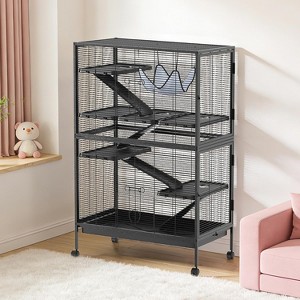 Ferret Cage, 50" H Large Cage with 4 Removable Ramps, Hammock, Metal Small Animal Cages On Wheels for Chinchillas, Guinea Pigs, Rabbit, Sugar Glider