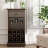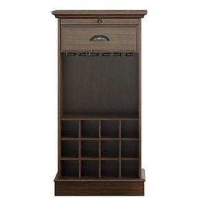 Introducing our latest product: the Farm House Style Wine Storage Rack.Bringing the cozy ambiance of countryside farmhouses into your home, we have designed this wine storage rack to infuse your living space with a natural, comfortable atmosphere. Inspired by the serene scenes of rural landscapes, it provides the perfect space to display and store your precious wines.One of the standout features of this wine storage rack is its 12 wine bottle slots, offering ample storage space to effortlessly showcase your collection. Additionally, the three metal wine glass racks in the middle tier provide convenient storage for wine glasses, keeping your barware neatly organized.Furthermore, we have equipped this wine storage rack with a drawer, allowing you to conveniently store small items such as corkscrews. The pull-out tray above the drawer offers extra display space for decorative items or additional wine accessories.Overall, with dimensions of 42 inches in height and 22 inches in width, this product is suitable for placement in various corners of your home. It adds a touch of countryside charm to your decor, allowing you to fully indulge in the delightful experience that wine brings.