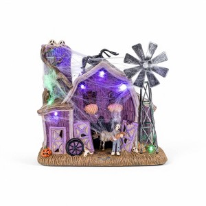 Enter the chilling world of The Webbed Barn, where flickering lights, bone-rattling sounds, and creepy creatures bring Halloween to life. From the spider-covered windmill to the skeletons hiding in plain sight, every detail is designed to thrill. Glowing LEDs and haunting audio create a spine-tingling atmosphere, while the expertly crafted porcelain build adds durability and depth. Easy to power with a 4-way switch and included adapter, this eerie barn is the perfect focal point for your haunted village—equal parts creepy and captivating