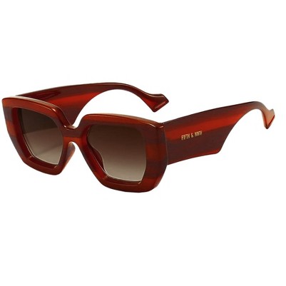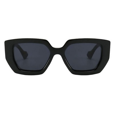 Rue polarized sunglasses feature a bold square frame with thick temples. Choose from classic black or bold patterns for the ultimate statement accessory.