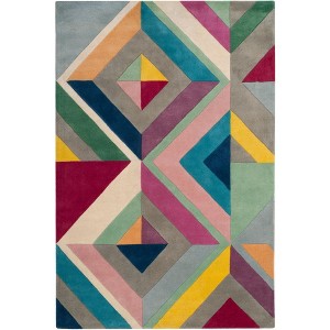 Introducing a stylish addition to your home-a contemporary area rug that marries form and function. Measuring 3 feet by 5 feet, this hand-tufted masterpiece from India is crafted from luxurious New Zealand wool. The small rectangle shape with a height of 5/8 inch fits seamlessly in any space. Its geometric pattern in grey and multi-color tones offers a modern flair that complements various decor styles. The tactile experience of the fine weave adds an inviting touch underfoot. Elevate your living area or workspace with this vibrant piece that showcases skilled craftsmanship and a keen eye for design. Transform your room into a haven of style and comfort with this versatile rug.