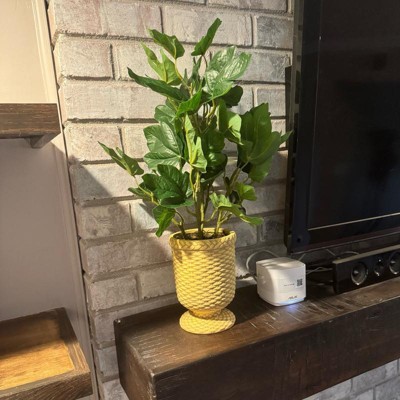 [This review was collected as part of a promotion.] This beautiful artificial fig arrangement is simply stunning. I love the faux gold pot that it comes in. It really elevates my space. I also loves that you can use this on your tabletop or the floor. Both ways take the space to the next level. I would definitely order more of these for the reer ot my home
