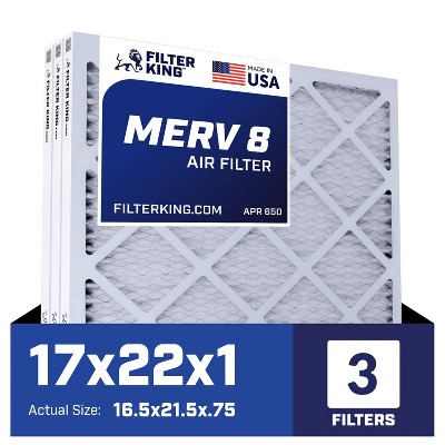 Filter King 19.88x21.5x1 Air Filter | 3-PACK | MERV 8 HVAC Pleated A/C Furnace Filters | MADE IN USA | Actual Size: 19.88 x 21.5 x .75"
