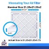 Filter King Merv 8 21.25x21.25x2 12-Pack Air Filter actual size is 21.25x21.25x1.75. Our 21.25x21.25x2 Furnace Filters are designed to last up to 90 days. These pleated 2-inch air filters are ideal for maintaining the efficiency of your heating and cooling systems. Make sure you measure your filter. The actual size of this pleated Merv 8 filter is 21-1/4 x 21-1/4 x 1-3/4