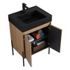 - This vanity exudes a polished look, elevating any bathroom decor to a level of luxury.