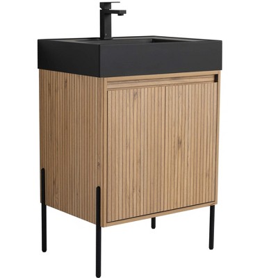 This vanity is very modern and fits perfectly in my hair bath off the kitchen. It is functional and stylish and gets compliments from my guests
