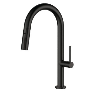 The Pull-down wand operates in an aerated or spray mode via ergonomic buttons