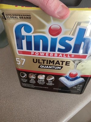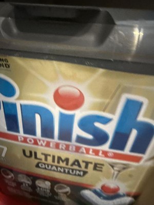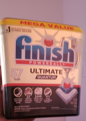 [This review was collected as part of a promotion.] I love the Finish Powerball Ultimate Quantum dishwasher tabs! They are fabulous at getting my dishes squeaky clean! They are very easy to use and come in a resealable container which I love. One little Finish Powerball packet cleans my entire dishwasher full of dirty dishes , pots and pans with no spots or left on food. I am highly impressed !