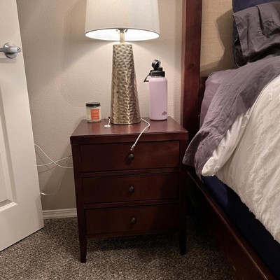 ClickDecor Finley Solid Wood 3 Drawer Nightstand Dark Brown: Mid-Century Modern, Bronze Hardware, No Assembly Required