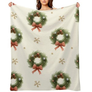 FIONECA Cream Christmas Wreath With Bow Pattern Classic Festive Throw Blanket Holiday Home Decor 30x40 inches