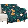 FIONECA Gingerbread Themed Christmas Blanket with Candy Cane Snowflake and Greenery Pattern Dark Green Background 30x40 inches
