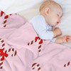 FIONECA Pink Christmas Throw Blanket with Candy Cane and Red Bows Soft Festive Holiday Throw Blanket 40x50 inches
