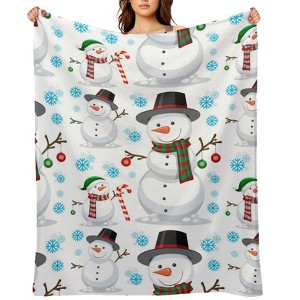 FIONECA Snowman Christmas Blanket with Candy Cane Ornaments Soft Fleece Holiday Cozy Throw Blanket 60x80 inches