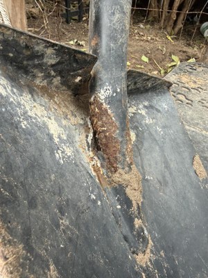 I have had this shovel about 1- 1 1/2 years. I only use it for making hole to plant plants and small gardening projects. Only soil touches the shovel. It had corroded where it was welded by the manufacturer. Very disappointing!! Eventually it will break since it has holes where it has corroded.