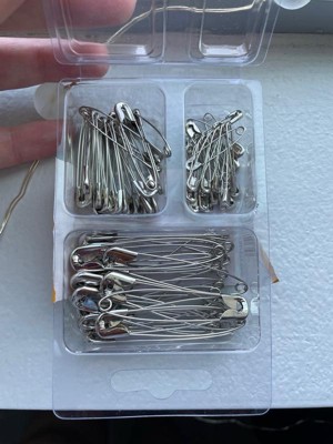 I needed a couple of safety pins, saw the Fiskars brand, and I'm glad I purchased this item. The package has separate compartments for each size. Easy to open and securely closes when done. The safety pins are sharp, high quality, and well made. A pleasant surprise was the two smaller size pins are hooked together in groups of 10 so they are easy to handle.